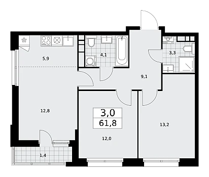 Купить 3к квартиру 61 м² в ЖК Сиреневый парк