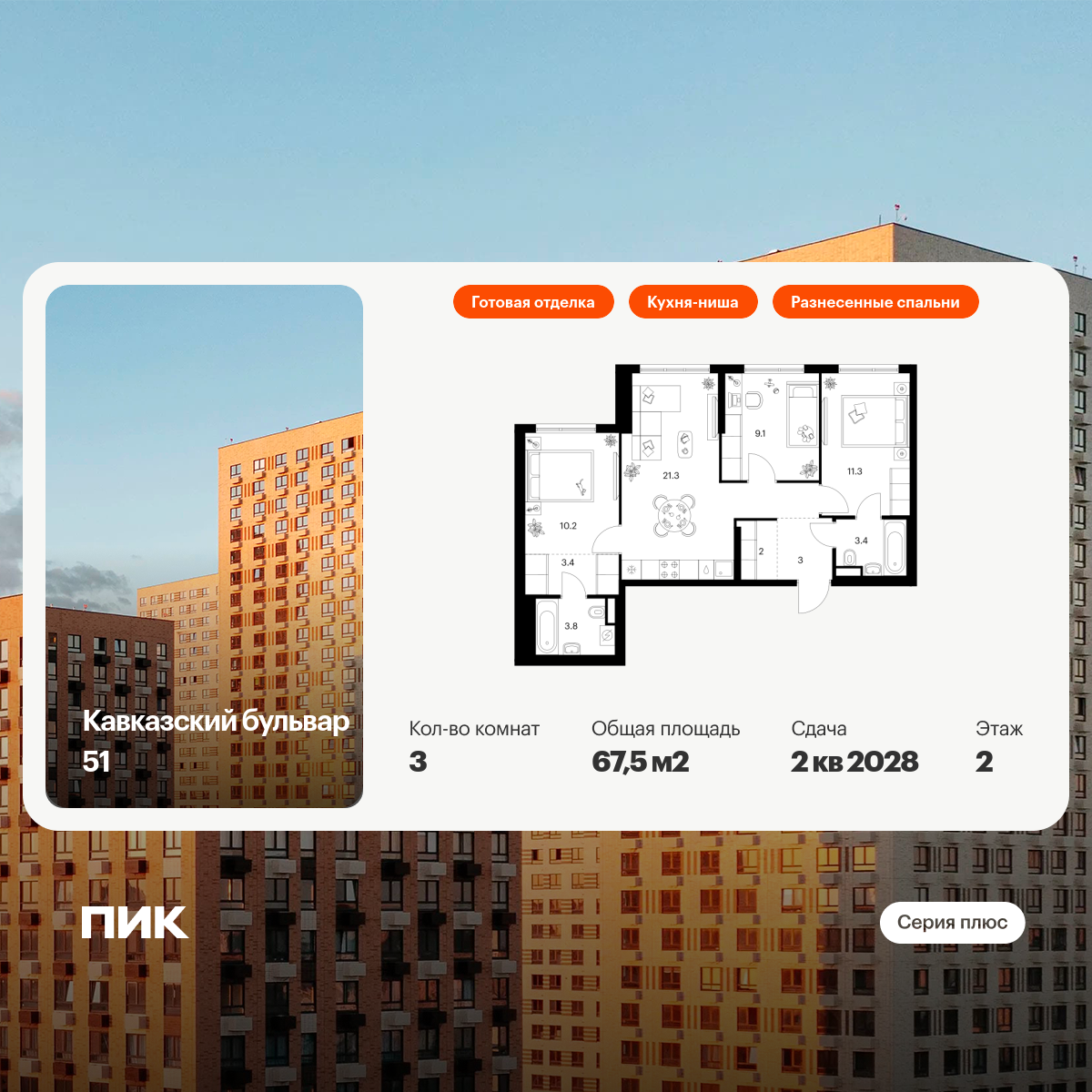 Купить 2к квартиру 64 м²