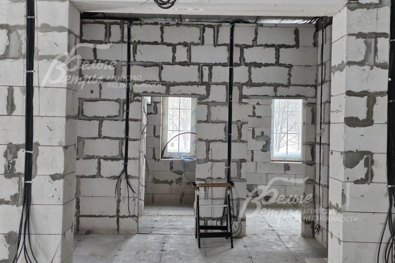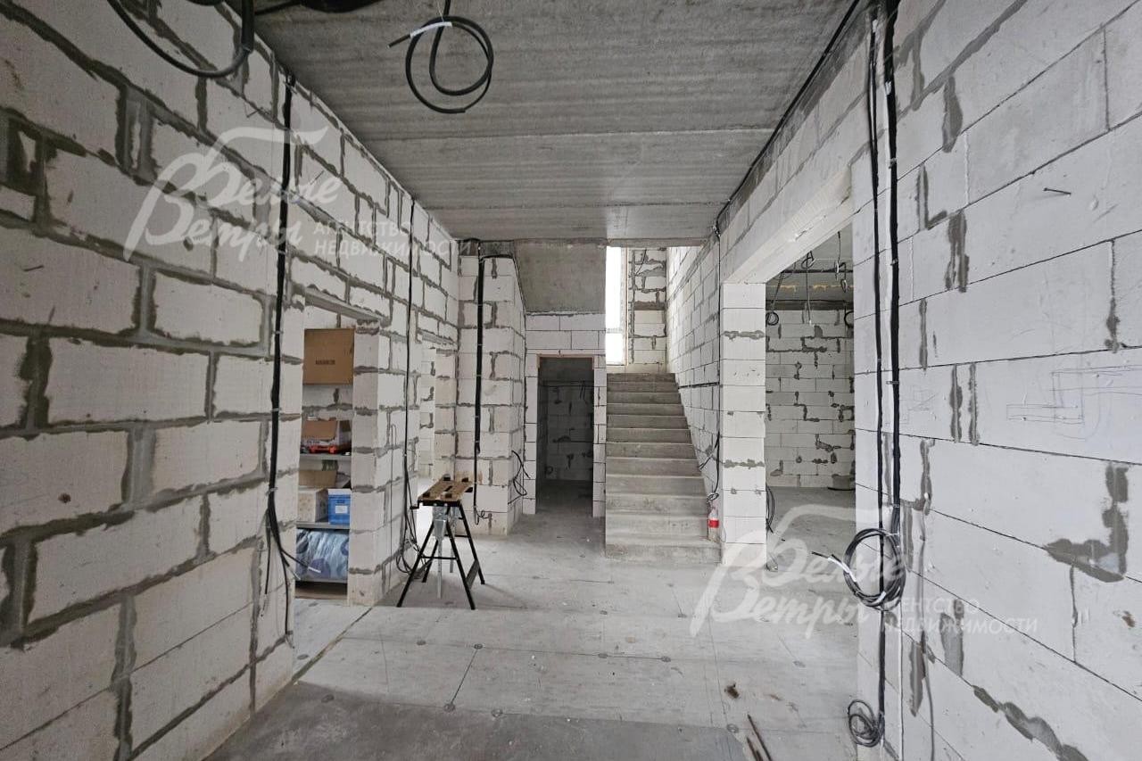 Внутренняя отделка: моголитный лестничный марш стандартной ширины. Заведено электричество, водоснабжение и канализация, будет введено отопление. Установлена красивая уличная дверь со стеклом и ковкой..