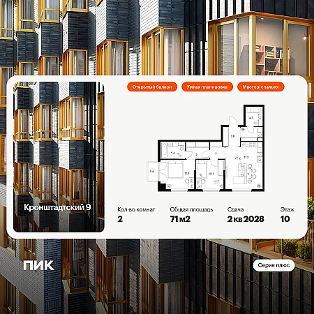 Купить 2к квартиру 71 м² в ЖК Кронштадтский 9