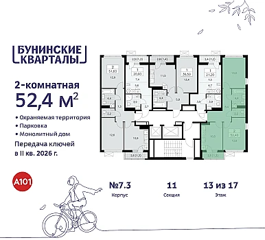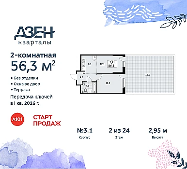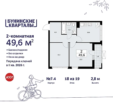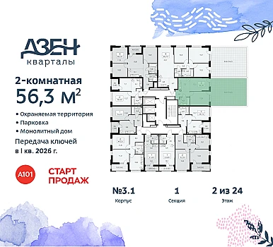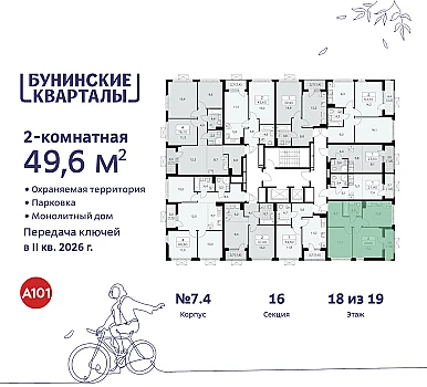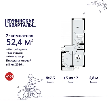 Купить 2к квартиру 56 м² в ЖК Саларьево парк