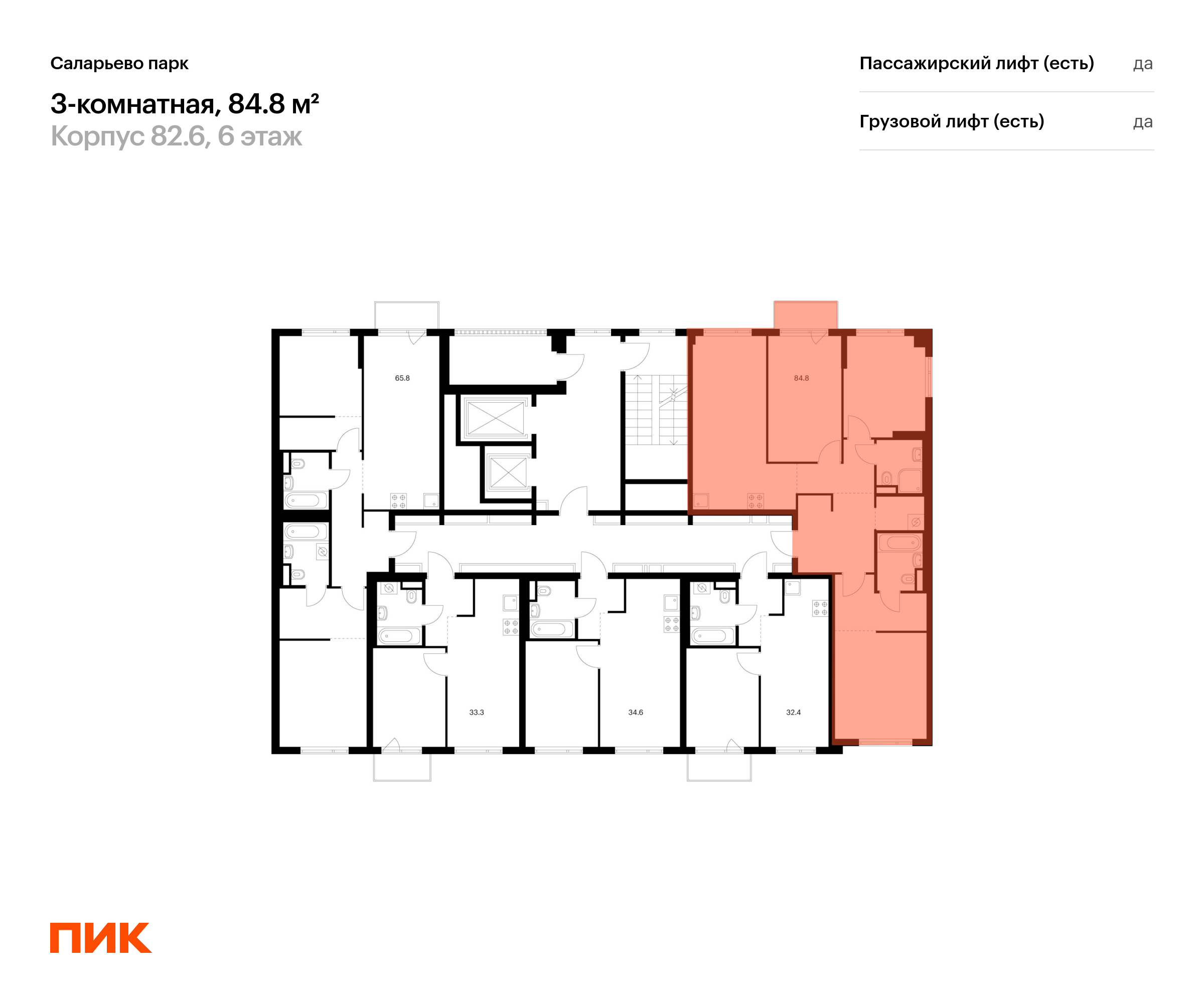 Продаётся 3-комн.квартира площадью 84.80 кв.м на 6 этаже 14 этажного дома (Корпус 82.6, секция 6) проекта ПИК Саларьево парк. Светлый просторный подъезд на уровне земли, функциональная планировка, большие окна, с отделкой.