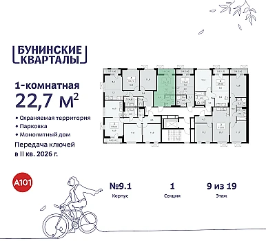 Продаётся 1-комн.квартира площадью 37.69 кв.м на 8 этаже 9 этажного дома (Корпус 4.1, секция 4) проекта ПИК Ильинские луга. Светлый просторный подъезд на уровне земли, функциональная планировка, большие окна, с отделкой.