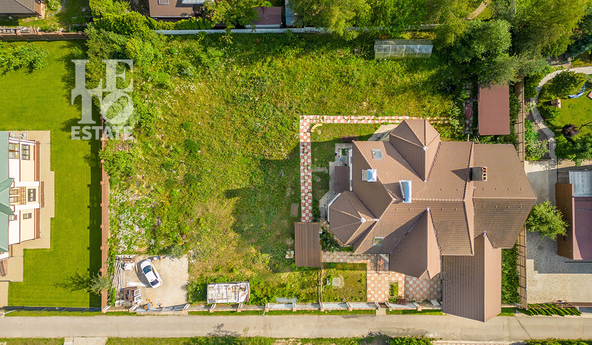 Многоуровневый участок площадью 8 соток, позволяет создать уникальный ландшафтный дизайн. Дополнительно сделана мангальная зона.