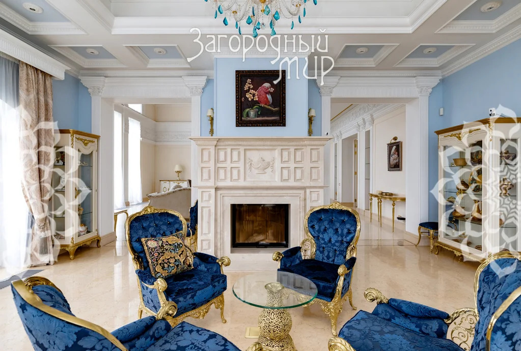 3 этаж: гостиная 37 кв.м, большая спальня с камином 80 кв.м, 2 санузла, 2 гардеробные комнаты, кабинет 60 кв.м.