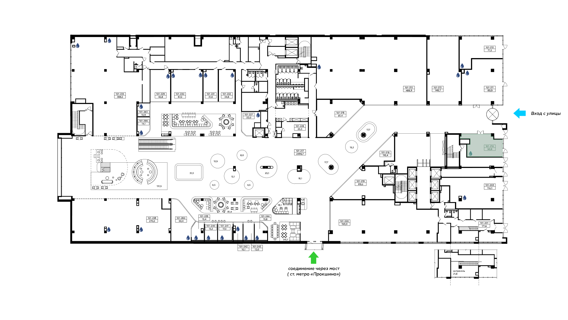 Высокие потолки 4,5 м, электрическая мощность (по запросу), мокрая точка, общеобменная вентиляция. Свободное назначение.