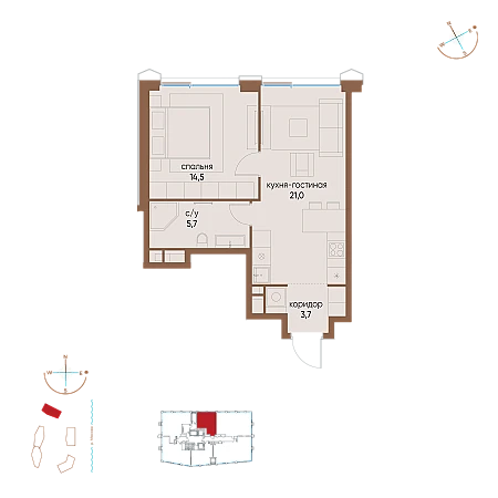 Купить 1к квартиру 44 м²