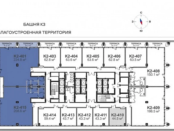 Продажа офисного помещения 208.6 м2 на 4 этаже в STONE Калужская. Башня К3.