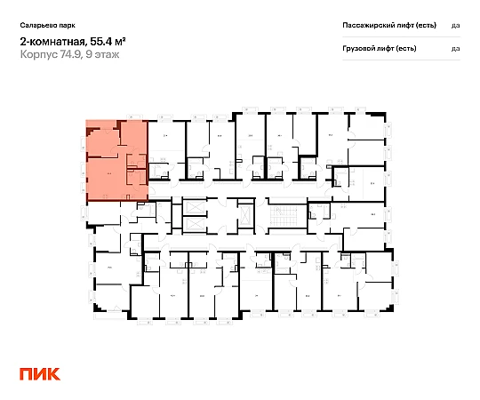 Продаётся 2-комн.квартира площадью 55.40 кв.м на 9 этаже 18 этажного дома (Корпус 74.9, секция 9) проекта ПИК Саларьево парк. Светлый просторный подъезд на уровне земли, функциональная планировка, большие окна, с отделкой.