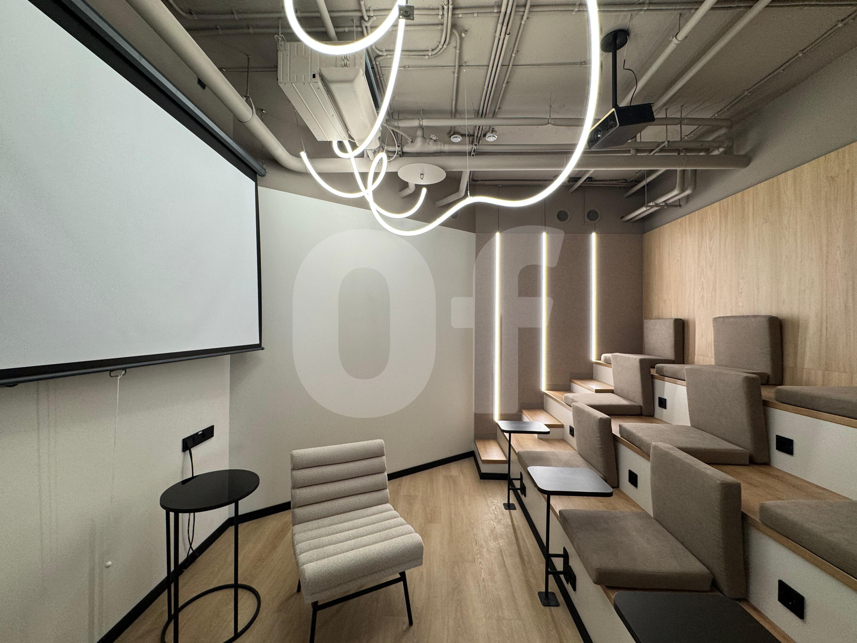Офис полностью меблирован и сочетает кабинеты руководства, open-space зоны, переговорные комнаты, серверную, мини-кухни, кофе-поинты и санузлы. Этаж с панорамными видами на город и Москва-Сити, готовый к немедленному въезду. Особенности: высокие потолки, панорамное остекление, современный дизайн в стиле лофт и терраса.