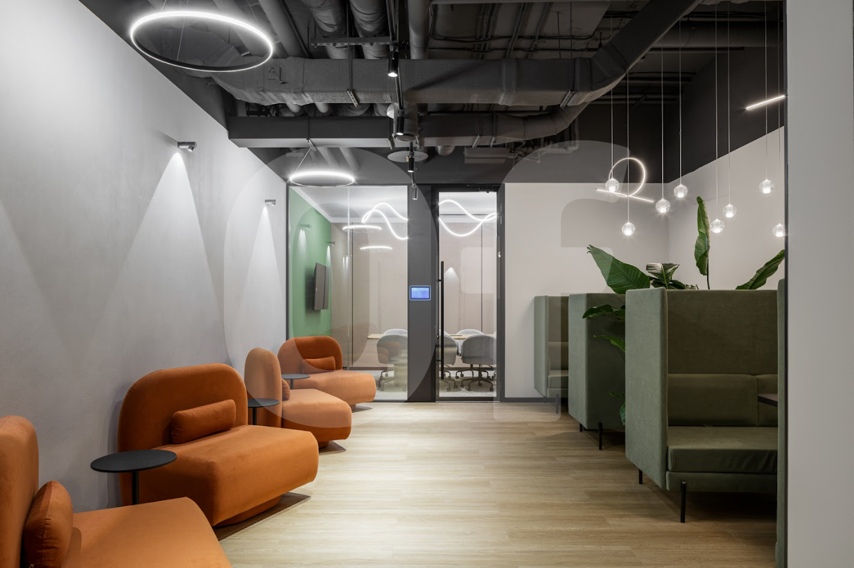 Видовой сервисный офис площадью 350 кв.м с собственной террасой. Помещение готово к въезду и рассчитано на 158 рабочих мест. Гибкие условия аренды без скрытых платежей.