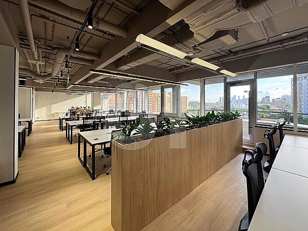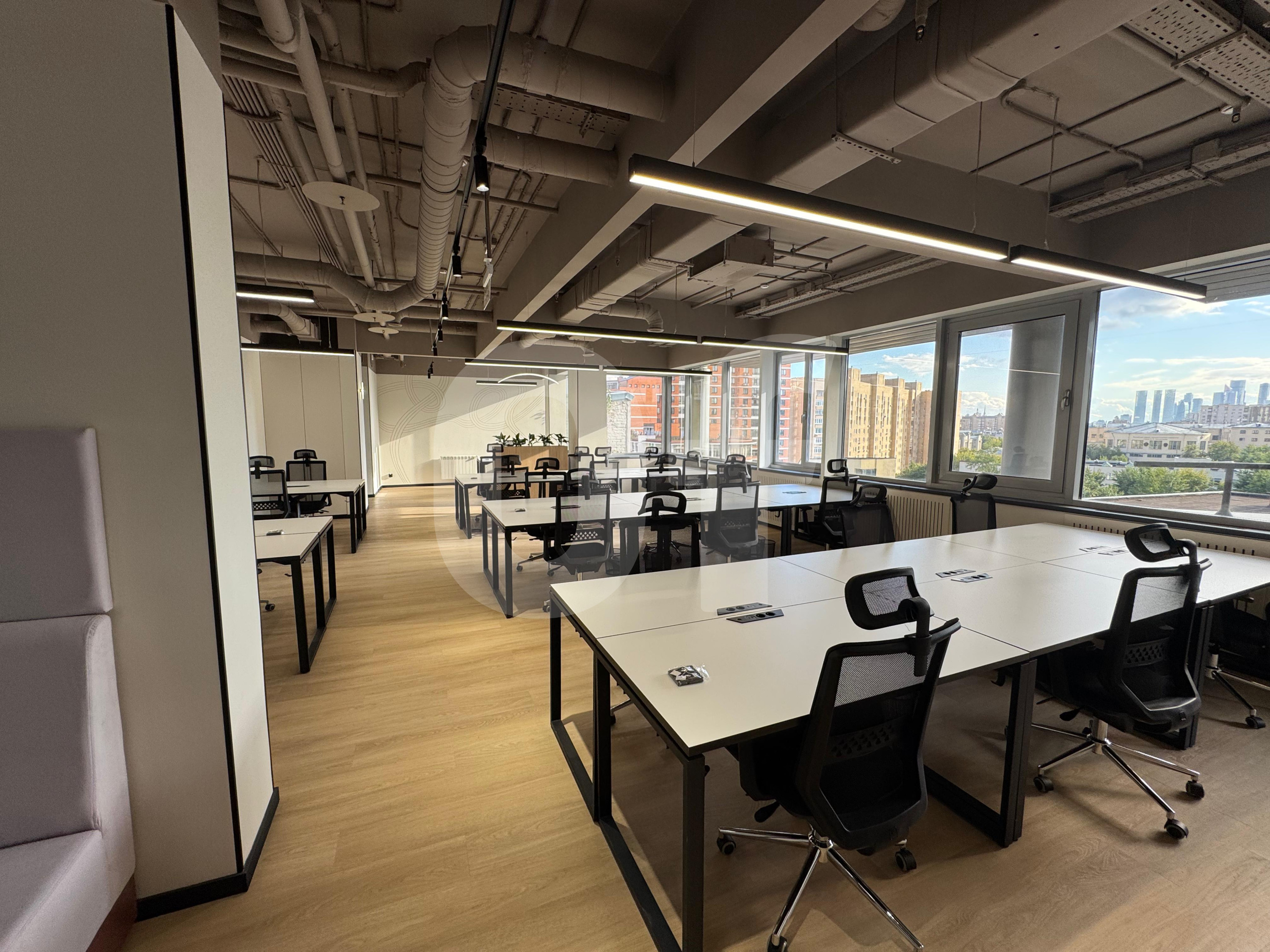 Офис полностью меблирован и сочетает кабинеты руководства, open-space зоны, переговорные комнаты, серверную, мини-кухни, кофе-поинты и санузлы. Этаж с панорамными видами на город и Москва-Сити, готовый к немедленному въезду. Особенности: высокие потолки, панорамное остекление, современный дизайн в стиле лофт и терраса.
