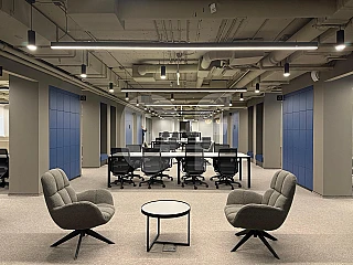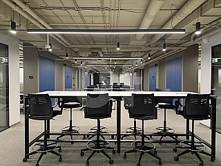 Офис включает разнообразные зоны для работы и отдыха: библиотеку, event-пространство, переговорные комнаты, зоны для командной работы и тихие кабинеты, а также оборудованную комнату для ВКС. Для вашего комфорта предусмотрены welcome-зона, кофе-зона и хотдески.