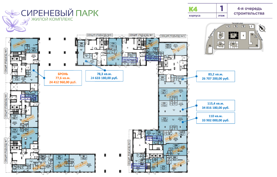 Свободные помещения в ЖК Сиреневый парк