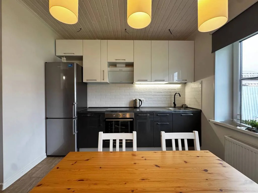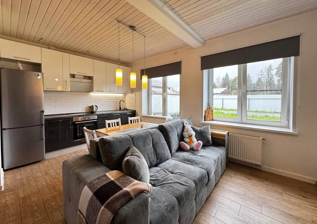 У дома кровля - ондулин, окна двойные стеклопакеты. В доме на первом этаже гостиная 40 кв.м с кухонной зоной, санузел. На втором этаже две спальни 12 и 15 кв.м.