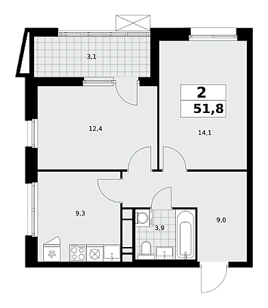 Продаётся 2-комнатная квартира, площадью 51,8 кв. м на 13-м этаже дома комфорт-класса в ЖК "Прокшино". Квартира с функциональной планировкой: большие окна, высота потолка 2,95 м, балкон.