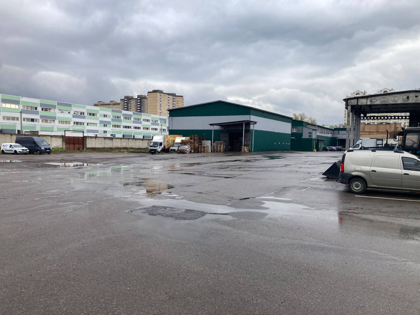 Электричество до 30 кВт. На территории есть АБК с санузлами. Там же можно арендовать офис.