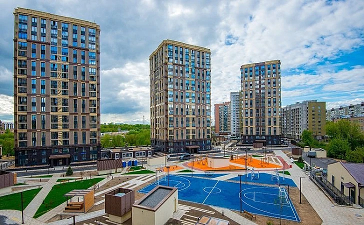 Территория закрыта - ограждена по периметру и изолирована от движения машин. Во дворе обустроен детский городок и зоны воркаута, а также велодорожка. В составе комплекса детский сад на 100 мест. Нижние этажи отведены под коммерческие помещения. Для автовладельцев спроектирован подземный паркинг на 612 мест.
