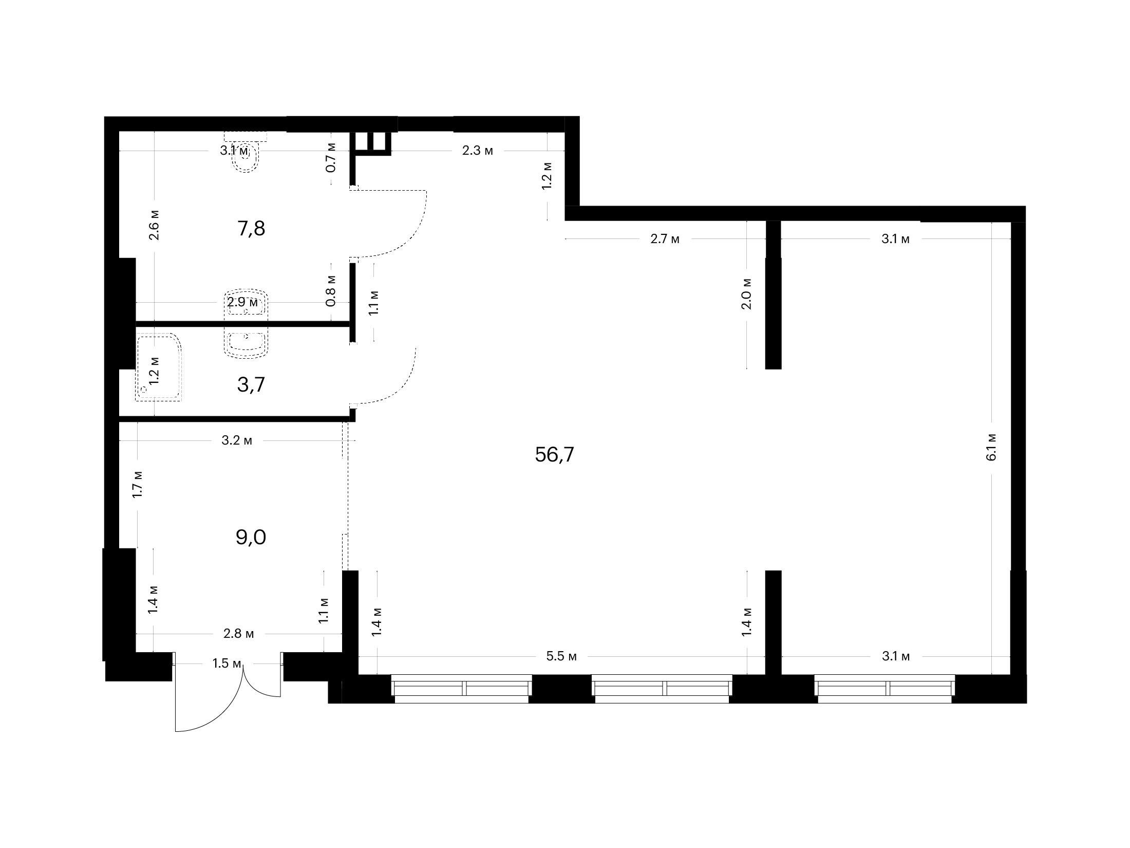 58 м²