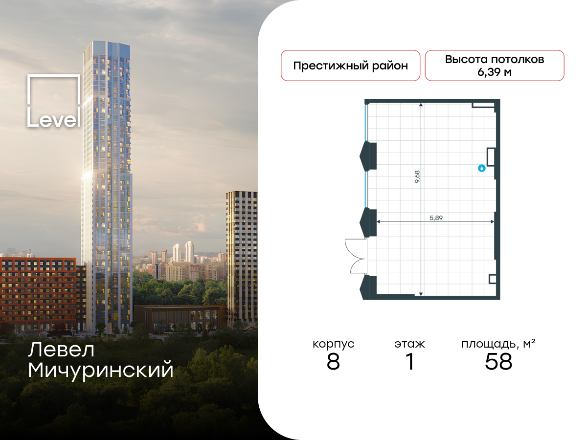 Купить ПСН 58 м² в ЖК Левел Мичуринский
