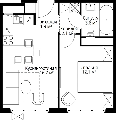 Купить 2к квартиру 32 м² в ЖК Аникеевский