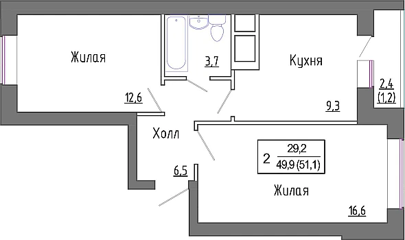 Купить 3к квартиру 52 м² в ЖК Аникеевский