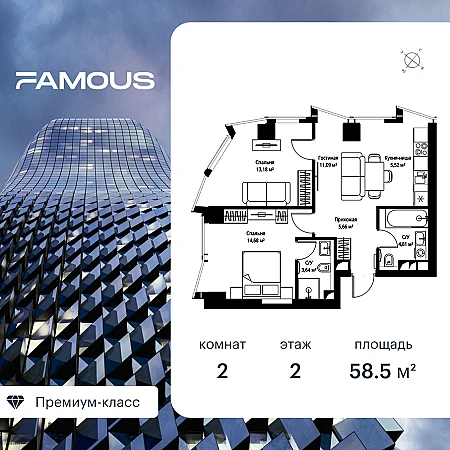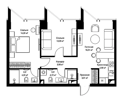 Купить 2к квартиру 62 м² в ЖК MYPRIORITY Павелецкая