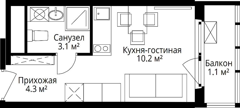 Купить 9к квартиру 18 м² в ЖК У реки. Эко Видное 2.0