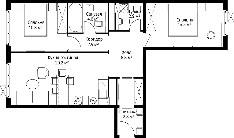 Купить 2к квартиру 66 м² в ЖК У реки. Эко Видное 2.0