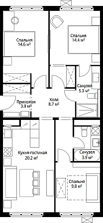 Купить 3к квартиру 80 м² в ЖК У реки. Эко Видное 2.0