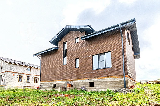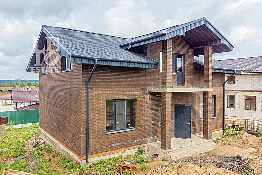 Дом. площадью 250 кв.м возведен из пеноблока+утеплитель+облицовочный кирпич, фундамент плита монолит, перекрытия монолитные железобетонные. В доме выполнена частичная отделка, разведено отопление, теплые полы, натяжные потолки. В холле и помещениях на полу плитка, ламинат. Закуплены межкомнатные двери, мебель, бильярд и т.д.