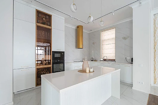 В доме на 1-м этаже: входная зона, холл, кухня, столовая, гостиная, с/у, а также гараж с автоматическими воротами и входом в дом; на 2-м этаже: холл, 3 спальни, 2 из которых - с большими с/у, оборудованными душевыми кабинами с гидромассажем, и гардеробными; на 3-м этаже: 2 спальни и с/у с душевой кабиной с гидромассажем; цокольный этаж: бойлерная и 2 помещения свободного назначения. Чистый и светлый дом полностью меблирован, оборудован всей необходимой техникой.