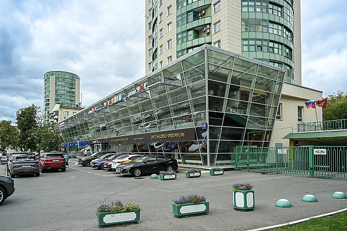 Отдельный вход с улицы, панорамные окна, вывеска на фасаде. Вокруг плотный жилой массив района, развитая инфраструктура. Высокий пешеходный и автомобильный трафик.