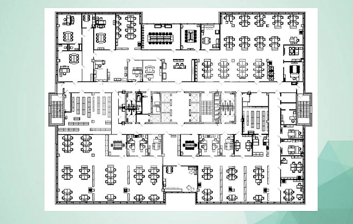 Офис площадью 2 800 кв.м. с высотой потолков 3,15 м в состоянии shell&core и открытой планировкой (шаг колонн 8,3×8,3 м), что позволяет реализовать индивидуальную планировку. Есть возможность деления на блоки.