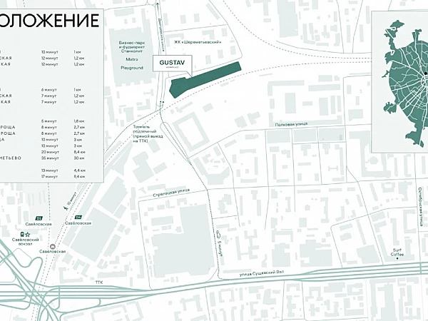 Продается торговое помещение в креативно-деловом кластере «GUSTAV», по адресу: г. Москва, САО, ул. Складочная, 6. Объект обладает превосходной транспортной доступностью: пешком от станций метро Савёловская (10 минут) и Дмитровская (22 минуты). Остановки наземного транспорта расположены в шаговой доступности. Обеспечен удобный выезд на основные магистрали: Ленинградский проспект и Савёловское шоссе. Место отличается высокой пешеходной проходимостью.