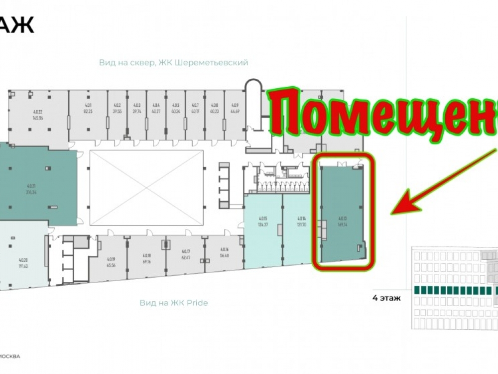 . 4 этаж 7-ми этажного административного здания, площадью 169,1 кв. м, отдельная входная группа. Высота потолков составляет 4 м. Запланирована современная VRV-система вентиляции и кондиционирования. Удобный подземный паркинг на 222 машино-места.