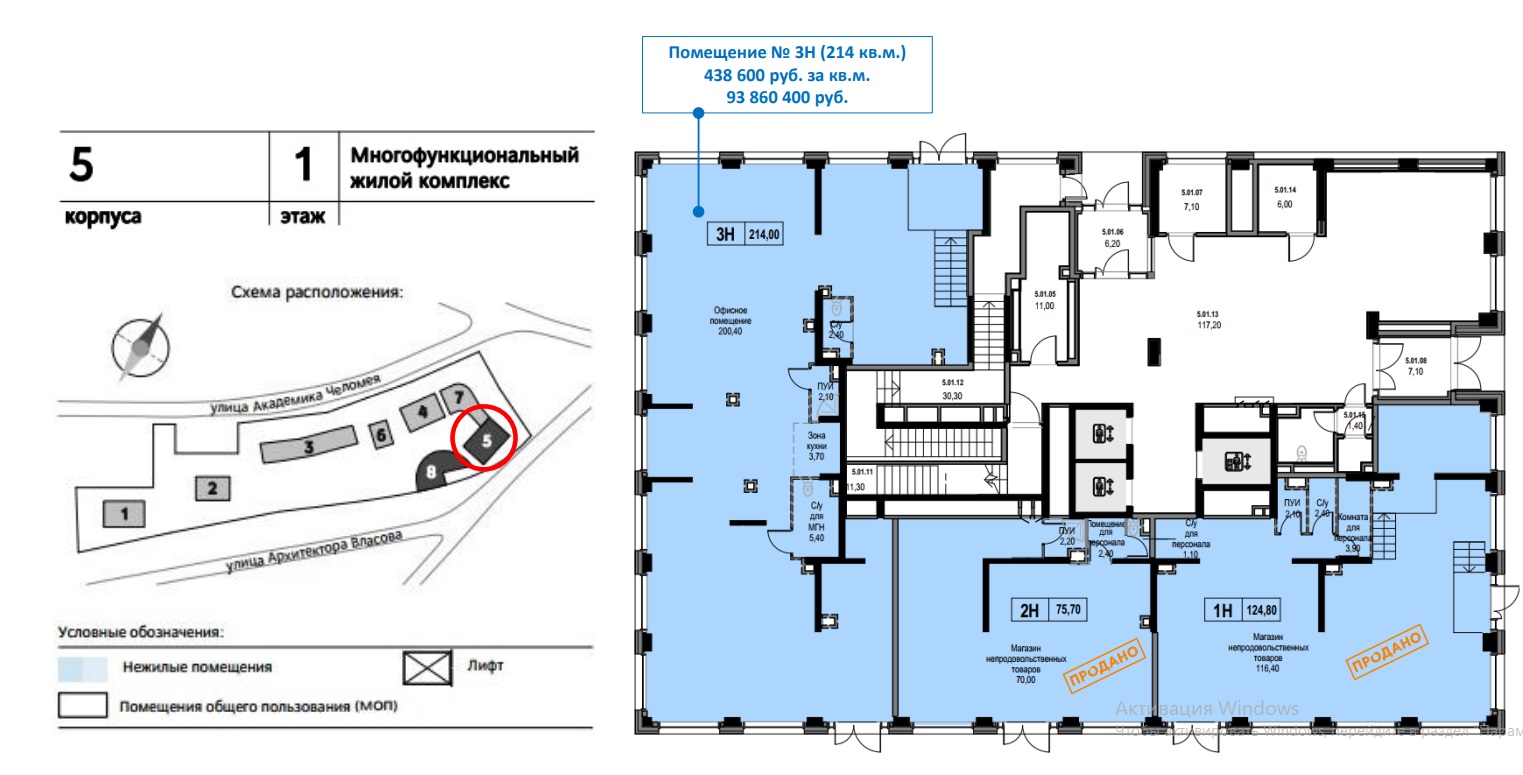 Номер лота на нашем сайте: 39711. Предлагаем в покупку коммерческое помещение на первом этаже строящегося жилого комплекса "AFI-PARK Воронцовский". Площадь 214 кв.м. Дом сдан в эксплуатацию в 2024 году. Помещение в корпусе 5 номер 3H. Два входа с противоположных сторон корпуса, прекрасное панорамное остекление по всему фасаду. Высокие потолки 5,62 метра. Свободная планировка. Электричества 65 кВт. Это клубный ЖК из пяти корпусов разной этажности. 846 квартир бизнес класса и 180 апартаментов. На первых этажах 22 торговых помещения. Окна витрины выходят на улицу Архитектора Власова. Гостевой паркинг на 62 мм. Рядом с ЖК находится еще огромный дом с большим количеством жителей. Помещение идеально подойдет под общепит. Окна витрины по периметру и современные технические параметры под ресторан или кафе для жителей ЖК.