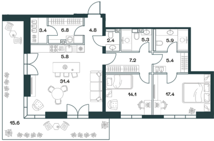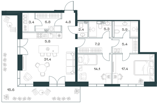 Купить 3к квартиру 125 м² в квартале SHIFT