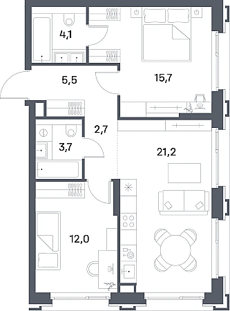 Купить 2к квартиру 64 м² в ЖК Portland (Портлэнд)