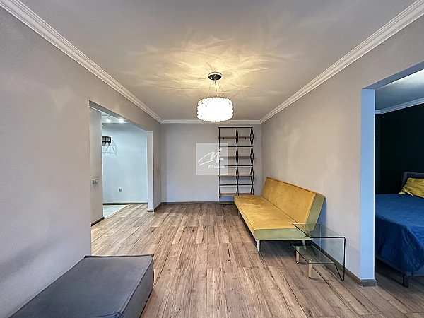 Эта квартира сразу чувствуется домом: здесь сделан стильный дизайнерский ремонт с гармоничным сочетанием цветов, качественная сантехника и всё продумано для жизни. Две смежные комнаты, кухня, совмещенный санузел и удобная кладовка-шкаф — всё компактно и функционально. Окна выходят во двор, где зелено и спокойно.