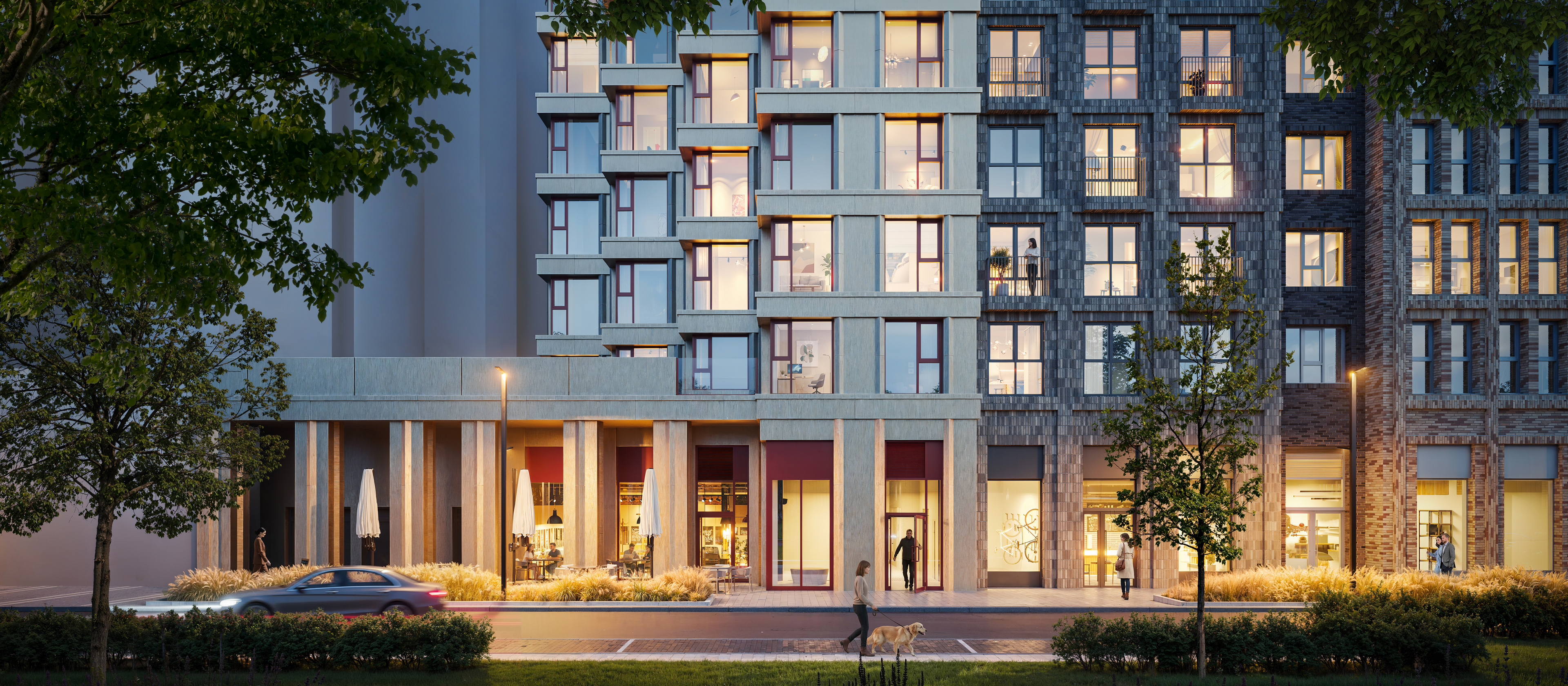 Особое внимание уделяется зоне первых этажей, где будет насыщенная городская среда: пешеходные галереи, коммерческие помещения и другие полезные сервисы для жителей. А для владельцев автомобилей и мотоциклов появятся подземные паркинги.