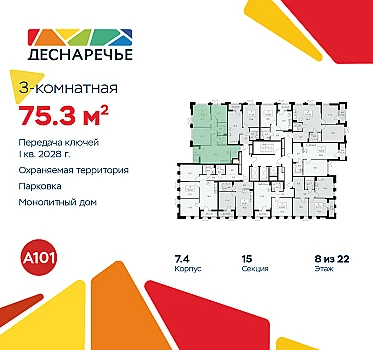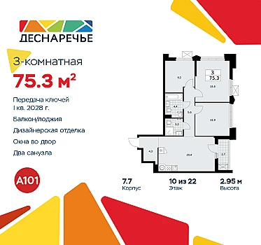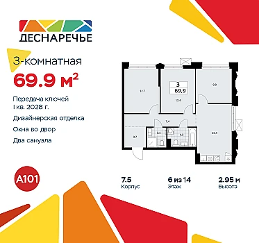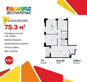 Купить 3к квартиру 89 м² в ЖК Восточное Бутово