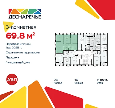Продаётся 3-комн.квартира площадью 89.00 кв.м на 14 этаже 16 этажного дома (Корпус 42, секция 1) проекта ПИК Восточное Бутово. Светлый просторный подъезд на уровне земли, функциональная планировка, большие окна, с отделкой.