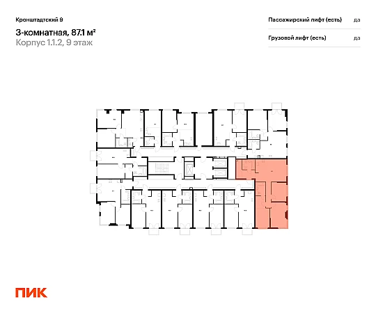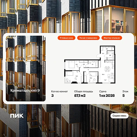 Купить 3к квартиру 87 м² в ЖК Кронштадтский 9
