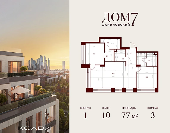 Купить 3к квартиру 77 м² в ЖК Дом 7 Даниловский