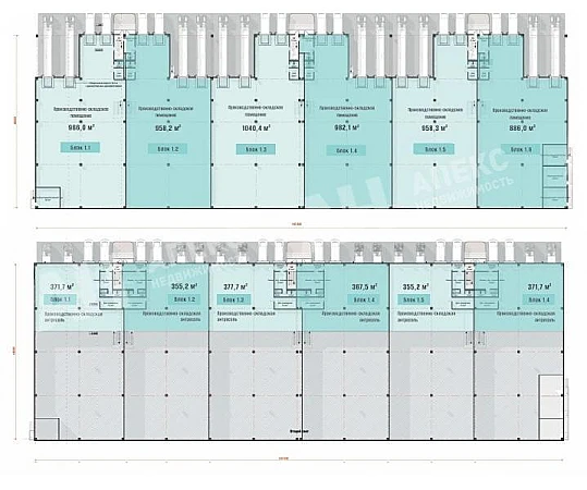 Есть возможность адаптации под нужны заказчика. В каждом блоке предусмотрен офис, кухня, душевая, санузел, тех.помещения.