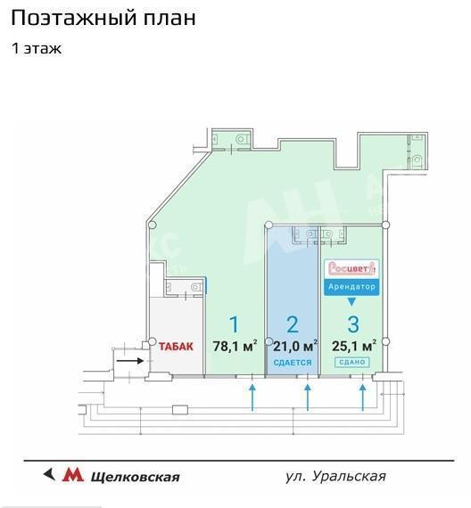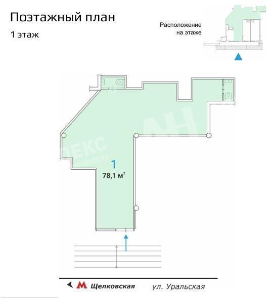Лот №967308 Продается помещение площадью 78.1 м² в ОСЗ в непосредственной близости от станции метро «Щелковская». Пешее расстояние до метро составляет три минуты. Объект характеризуется отличной пешеходной и транспортной доступностью.