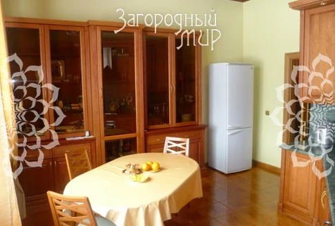Добротный жилой дом с отделкой "под ключ" площадью 354 кв.м выполнен из бруса, утеплен, обложен кирпичом, оштукатурен и покрашен. Очень теплый. В доме 2 этажа, 4 уровня. Фундамент у дома монолитный ленточный, перекрытия железобетонные, кровля металлочерепица, на окнах установлены деревянные качественные стеклопакеты. Внутренняя отделка стен - обои, дубовые панели, евровагонка, напольное покрытие - плитка, паркетная доска, подогрев полов. В доме 4 спальни, 2 сан.узла, кухня, каминная, бассейн с противотоком 12 метров, баня, кабинет, бильярдная, отапливаемый гараж на 4 авто; в цокольном этаже 3 комнаты свободного назначения. Высота потолков достигает 320 см. Отопление - газовый котел, подведен магистральный газ, электричество мощностью 10 кВт, 3 фазы, водоснабжение - скважина 50 м, канализация септик.