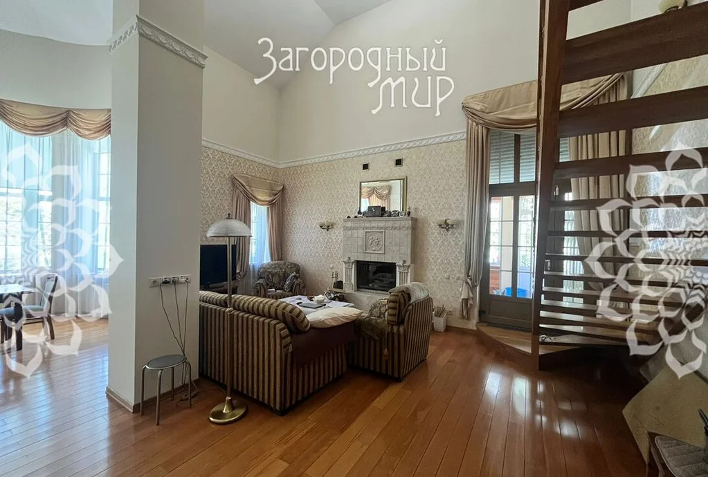 В доме на первом этаже просторная гостиная со вторым светом и с камином, кухня с выходом в зимний сад, спальня, санузел. Также на первом этаже находится бассейн 4,5 на 2,5 метра, с подогревом, оборудованный противотоком, и русская парная. На втором этаже имеется 2 спальни, большой санузел с джакузи, большая гардеробная комната. Также на первом этаже находится застекленная терраса с выходом в сад.