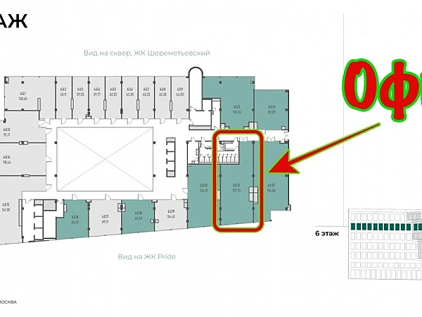 . 6 этаж 7-ми этажного административного здания, площадью 137,7 кв. м, отдельная входная группа. Высота потолков составляет 4 м, запланирована современная VRV-система вентиляции и кондиционирования. Удобный подземный паркинг на 222 машино-места.